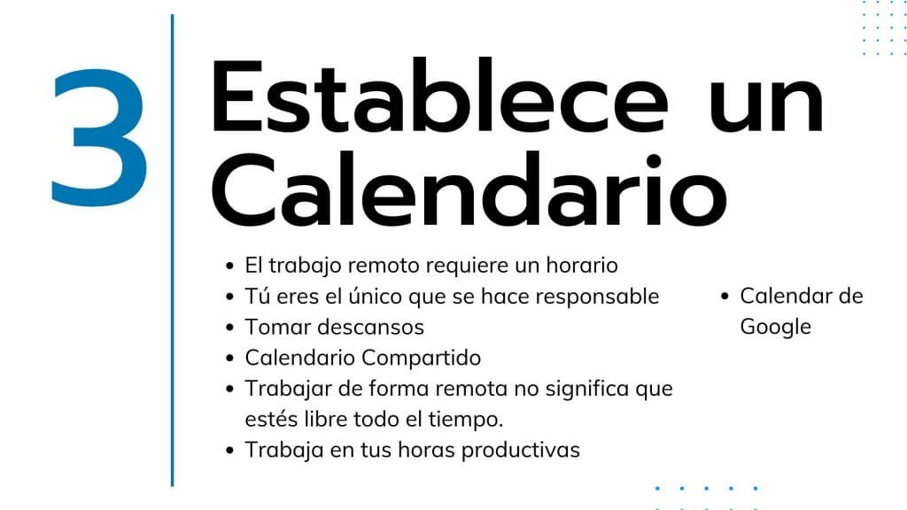 - Establece un Calendario y horarios de trabajo y ocio