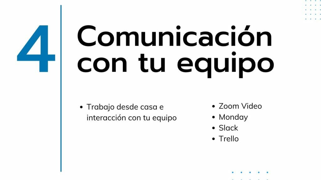 - Usa herramientas para comunicarte y mantener el feedback con con tu equipo o clientes